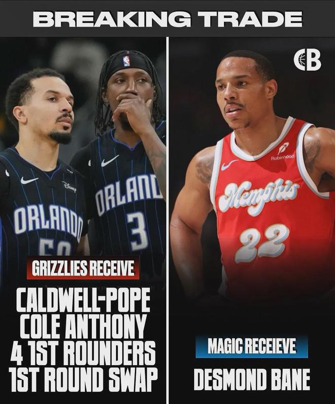 波普的合同3年6600万美元,2027年夏天到期,本赛季和下赛季薪水都是2162万美元。波普出生于1993年2月18日,刚过完33岁的生日。2025年夏天,灰熊把贝恩送到魔术,1换7得到科尔-安东尼,波普、4个首轮签和1个首轮互换。