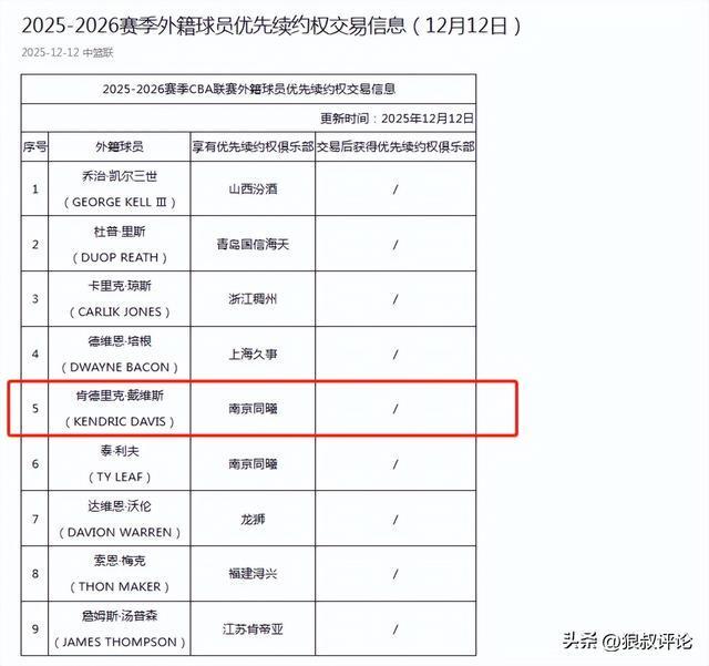 随着下一周外援注册截止日期临近,肯德里克·戴维斯是否会登陆CBA联赛,同样是外界关注的焦点话题。