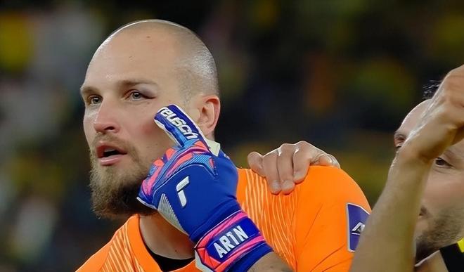 第86分钟,更大的争议出现,吉达联合利用一次前场定位球机会,由佩雷拉门前垫射扳平比分。正当主队陷入疯狂庆祝时,马宁在场外视频裁判的提示下进行介入,随后他亲自到场边观看视频回放后,认定佩雷拉在进球过程中存在手球犯规,并改判进球无效!