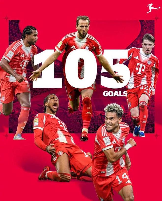 以4比2的比分战胜斯图加特之后,拜仁不仅成功卫冕德甲冠军,而且以109球继续刷新德甲单赛季进球纪录。