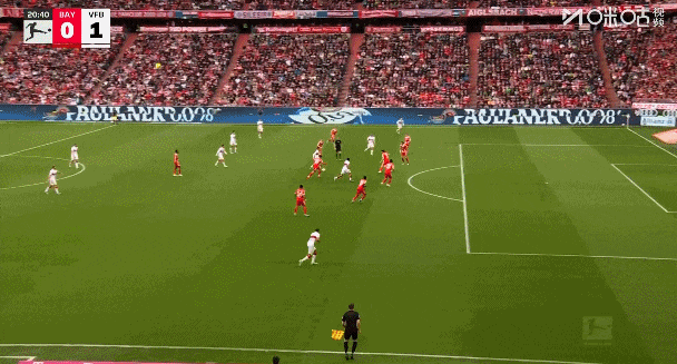 第31分钟,穆西亚拉左路强突后横扫门前,格雷罗包抄打空门得手,拜仁1比1追平比分!