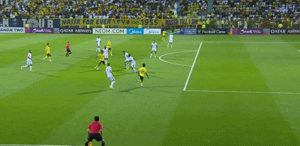 第10分钟,扬萨内带球内切低射破门,利雅得胜利0-1!