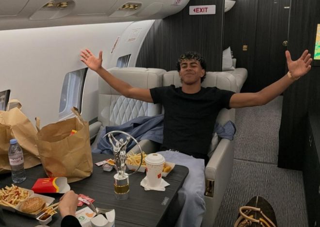 胡安弗里奇给出的证据也有一定的说服力,亚马尔在今年的劳伦斯颁奖典礼上,拿到了最佳青年运动员奖项,这也是他连续2年收获劳伦斯奖。在获奖之后亚马尔更新了自己的社交媒体,他在自己的私人飞机上和朋友进行庆祝,桌子上摆满了薯条、汉堡和可乐。胡安弗里奇认为亚马尔的受伤就是因为“赛前不到48小时,凌晨时分乘坐私人飞机,一边嬉笑着一边吃着快餐。”