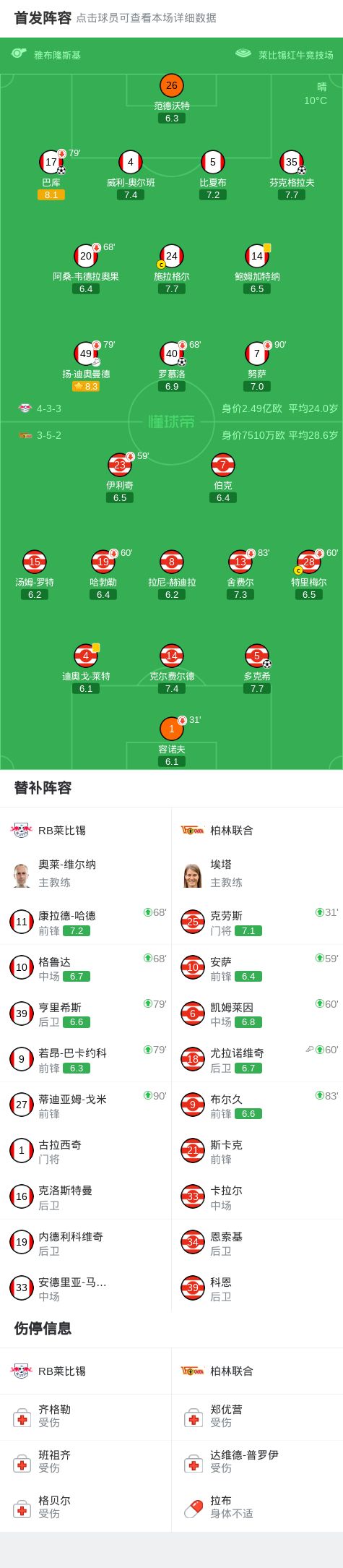 第63分钟,扬-迪奥曼德助攻巴库推射破门,莱比锡3-0