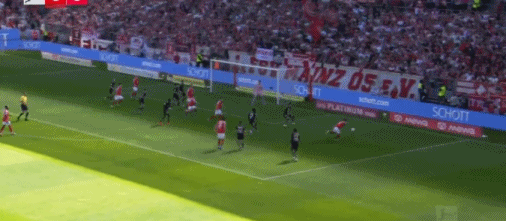 第29分钟,格雷罗中场丢球,之后的进攻内贝尔补射破门,美因茨2-0拜仁