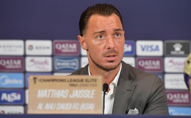 在主场对阵町田泽维亚的亚冠精英赛决赛前夕,吉达国民主帅雅伊斯勒出席赛前新闻发布会。